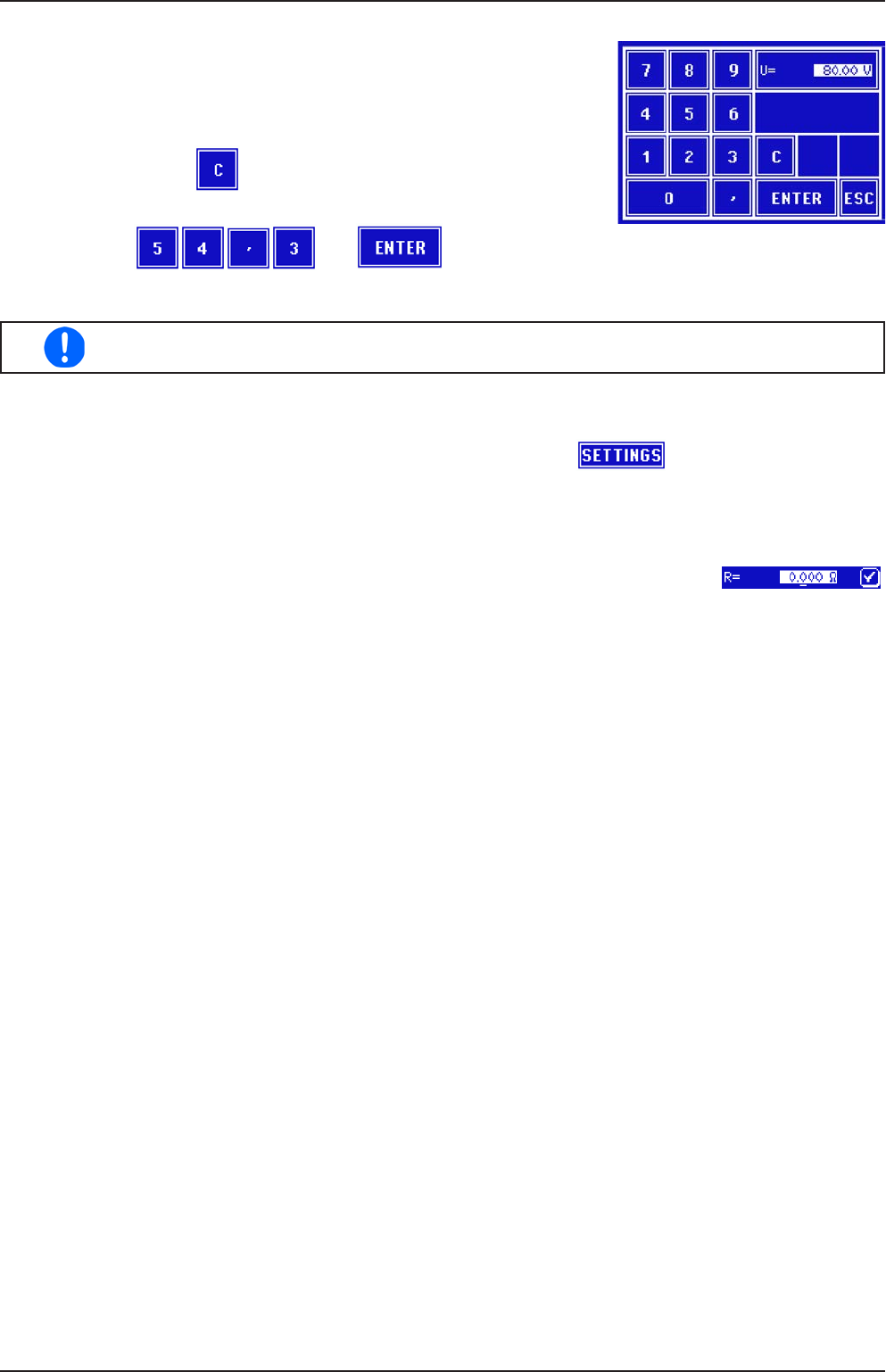 Decimal values are set by tapping the point key. For example, 54.3 V