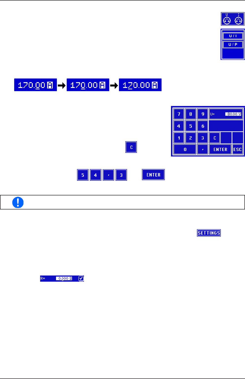► So können Sie manuell Sollwerte U, I, oder P per Direkteingabe einstellen