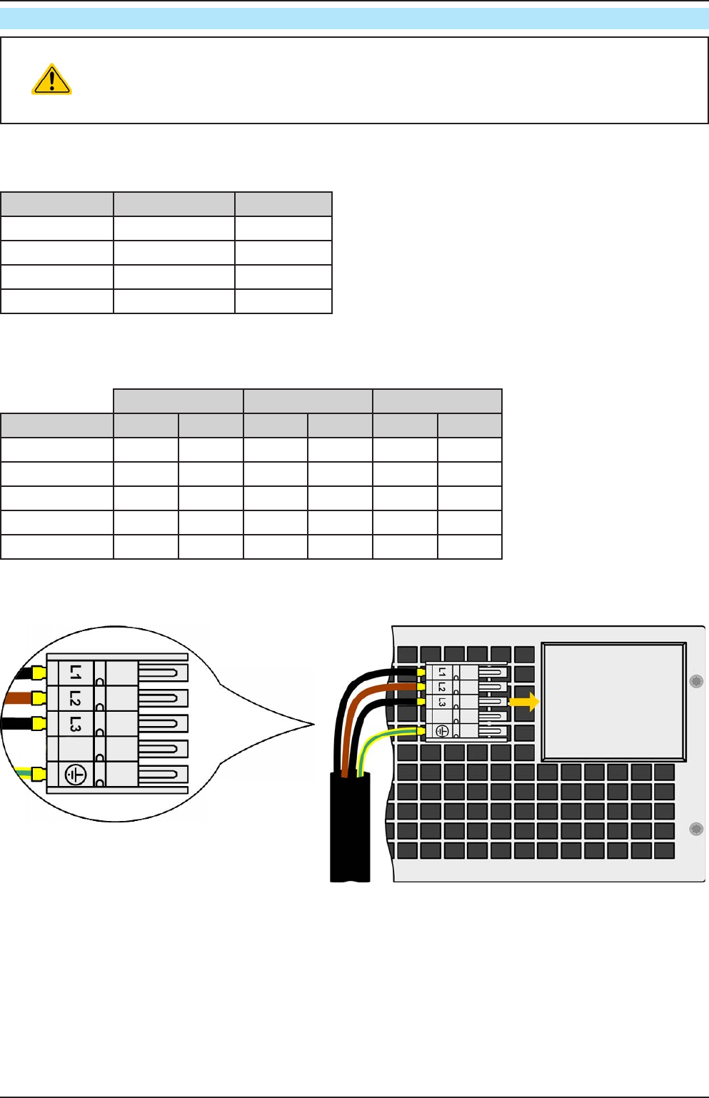>15 kW L1, L2, L3, PE Three-phase