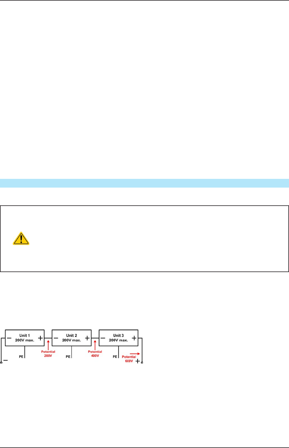 • Reihenschaltung darf nur mit Geräten gleichen Typs, also z. B. Netzgerät PS/PSI 9080-170