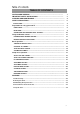 Table of contents TABLE OF CONTENTS CAUTION AND WARNING………………………………………………….………….. 1 IMPORTANT SAFETY INSTRUCTIONS………………..………………..………..….. 3 CLEANING AND MAINTENANCE………………………………………….……………. 4 SAFETY PRECAUTIONS..…………………………………………………….………….. 6 INSTALLATION……………………………………………………………….….……….... 7 Preparation for using your new TV ……………………………………….…………... 8 FRONT PANEL………………………………………………………….……….………… 8 REAR PANEL…………………………………………………………………….....……... 9 CONNECTIONS AND EXTERNAL INPUT SETTINGS…………………………..….