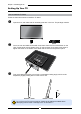Chapter 1 Introducing the TV Setting Up Your TV How to install the TV Stand Follow the instructions below to install the TV stand: Open the box, and make sure all necessary parts are in the box. The package contains: TV Stand Cover an even and stable surface with a soft cloth. Place the TV unit face-down on the cloth. Fit the stand onto the bottom of the TV unit as shown, then use a screw driver to tighten the screw on the bottom of the stand until the screw is firmly fixed in place.