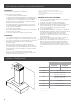 A Installation de la Hotte 1 À deux personnes au moins, suspendre la hotte aux 2 crochets de montage, à travers les encoches de montage à l’arrière de la hotte. A C B A. B. C. 4 5 6 7 B Axe central Emplacements des attaches Ligne de référence pour la hauteur de montage (bas de la hotte) À l’aide du gabarit, marquer sur le mur le centre des attaches. IMPORTANT: Toutes les vis de montage de la hotte en îlot doivent être vissées dans du bois où cela est possible.