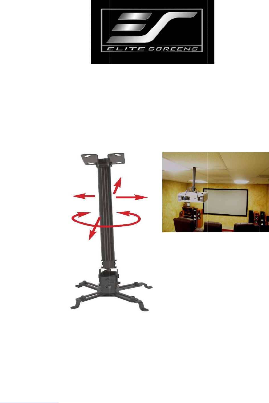 The A56‐E25B Projector mount is 90% compatible with most projector designs. It is easy to use for ceiling projector installations. It includes standard screw hardware for the projector. It can be adjusted in both length and height to optimize the right level of projection. The extension bar can also be removed for low ceiling installation, please see example #1. Example of A56‐E25B with extension bar for high or angled ceilings. www.elitescreens.
