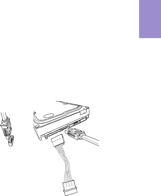 3 Attach the SATA power cable to the SATA hard drive and connect the other