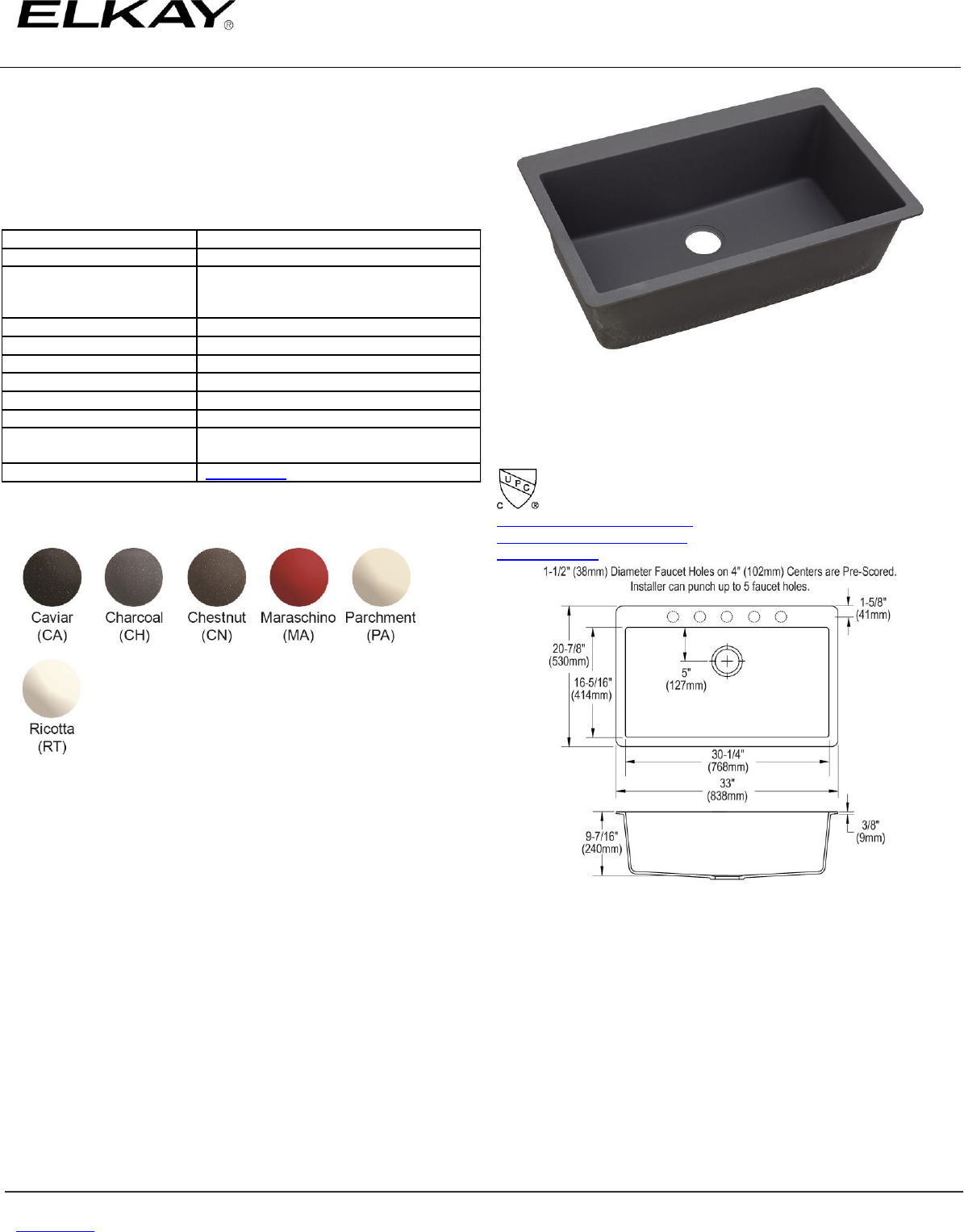 for the most current version of Elkay product specification sheets. This specification describes an Elkay product with design, quality, and functional benefits to the