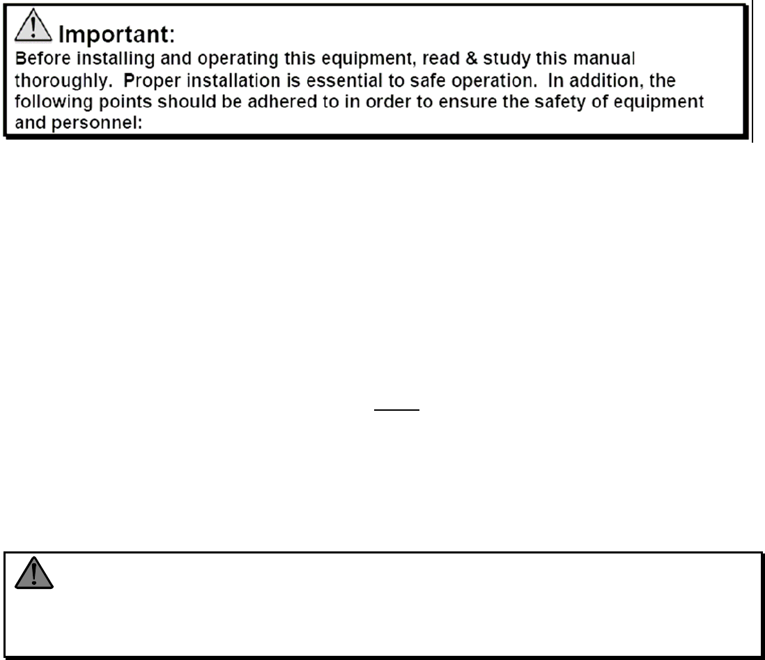 1. All Personnel who may be expected to use this equipment must be thoroughly trained in its