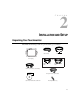 CHAPTER 2 INSTALLATION AND SETUP CHAPTER2 Unpacking Your Touchmonitor Check that the following 9 items are present and in good condition: OSD Remote Video cable LCD Display OR USB touchscreen cable Serial touchscreen cable Monitor power cable (US/Canada) Elo Quick Install Guide European monitor power cable CD Software Quick Install Guide and software CD Mounting brackets (2) 2-3