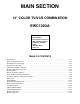 MAIN SECTION 13" COLOR TV/VCR COMBINATION EWC1303A Main Section I Specifications I Preparation for Servicing I Adjustment Procedures I Schematic Diagrams I CBA’s I Exploded Views I Parts List TABLE OF CONTENTS Specifications. . . . . . . . . . . . . . . . . . . . . . . . . . . . . . . . . . . . . . . . . . . . . . . . . . . . . . . . . . . . . . . . . . . . . . . . . . 1-1-1 Important Safety Precautions. . . . . . . . . . . . . . . . . . . . . . . . . . . . . . . . . . . . . . . . . . . . . . . . . . . .