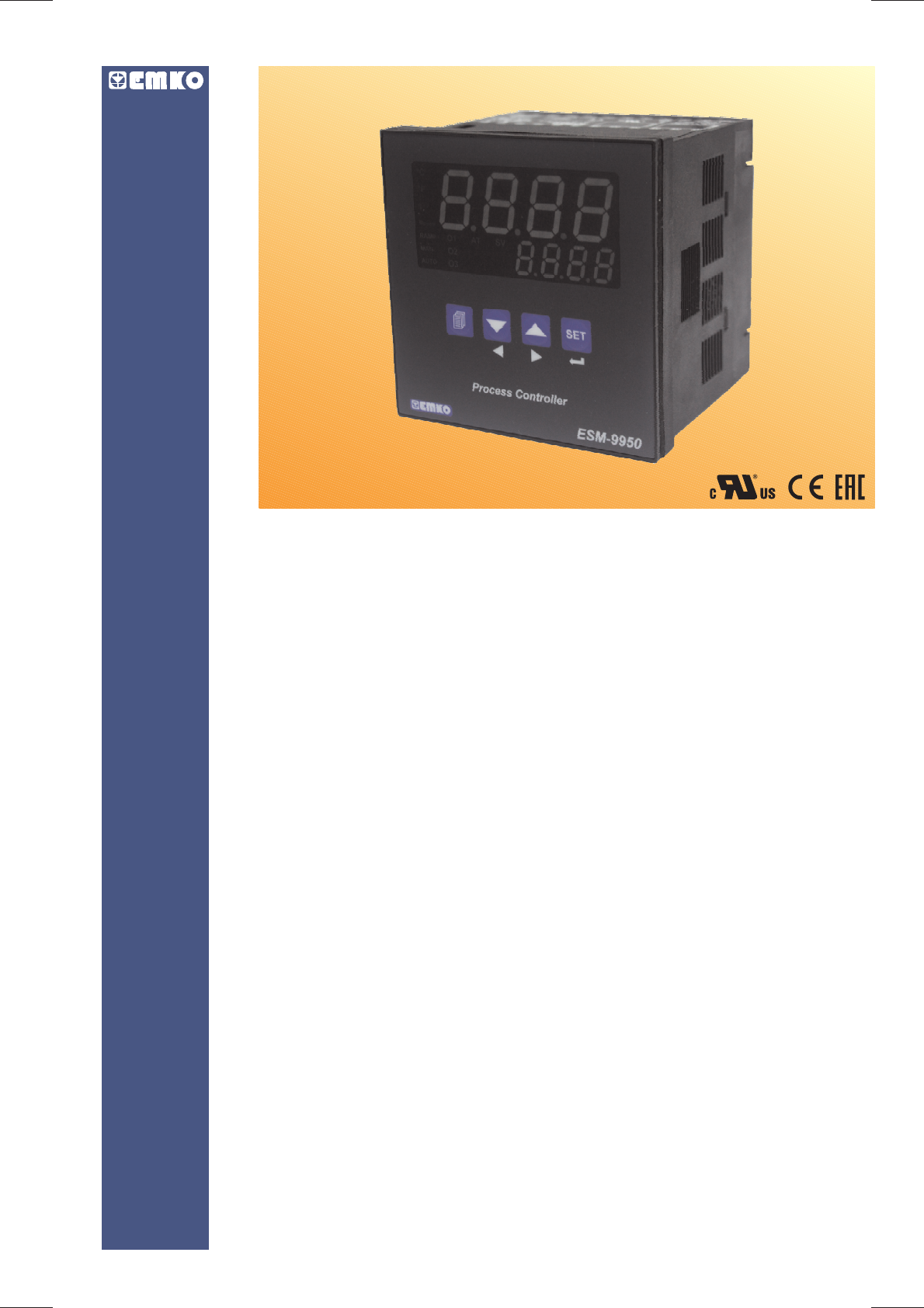 Process Controller ESM-9950 96x96 1/4 DIN ESM-9950 96 x 96 1/4 DIN Universal Input PID Process Controller with Smart I/O Module System - 4 digits process (PV) and 4 digits process set (SV) display - Universal process input (TC, RTD, mVZ , VZ , mAZ) - Optional secondary sensor input - Dual or multi point calibration for ZVoltage / Current input - Configurable ON/OFF, P, PI, PD and PID control forms - Adaptation of PID coefficients to the system with Auto-tune and Self-tune - Manual/Automatic mode selection