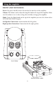 Using the Amplifier FRONT AND TOP PANELS Power: The power on/off switch is located on the front face of the amplifier. Volume: The volume can be adjusted using the knob on the top of the amplifier. Make sure the volume is set at a low setting when initially setting up the amplifier. Mode: Using the Mode knob on the top of the amplifier you can select from either AUX, MP3 or CD/DVD inputs.