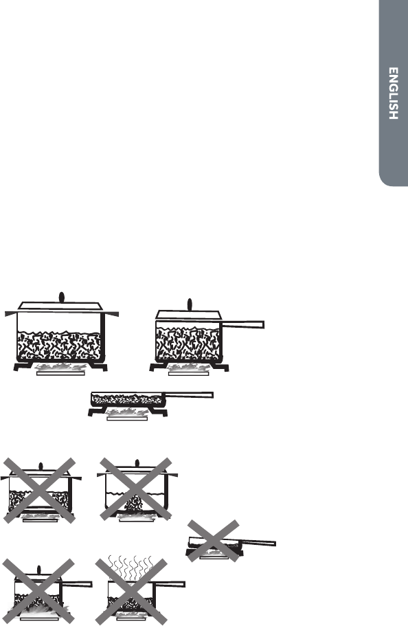 A well-tting lid helps shorten the cooking time. Flat, heavy bottom pans provide