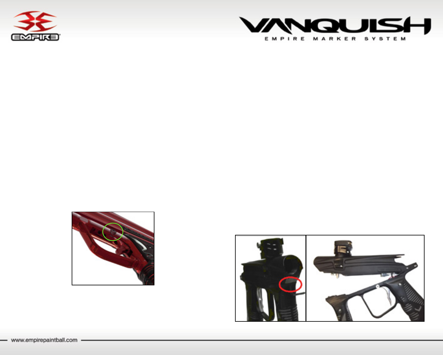4. Le corps peut alors être ouvert à l’écart de l’armature de la poignée à l’arrière du marqueur.