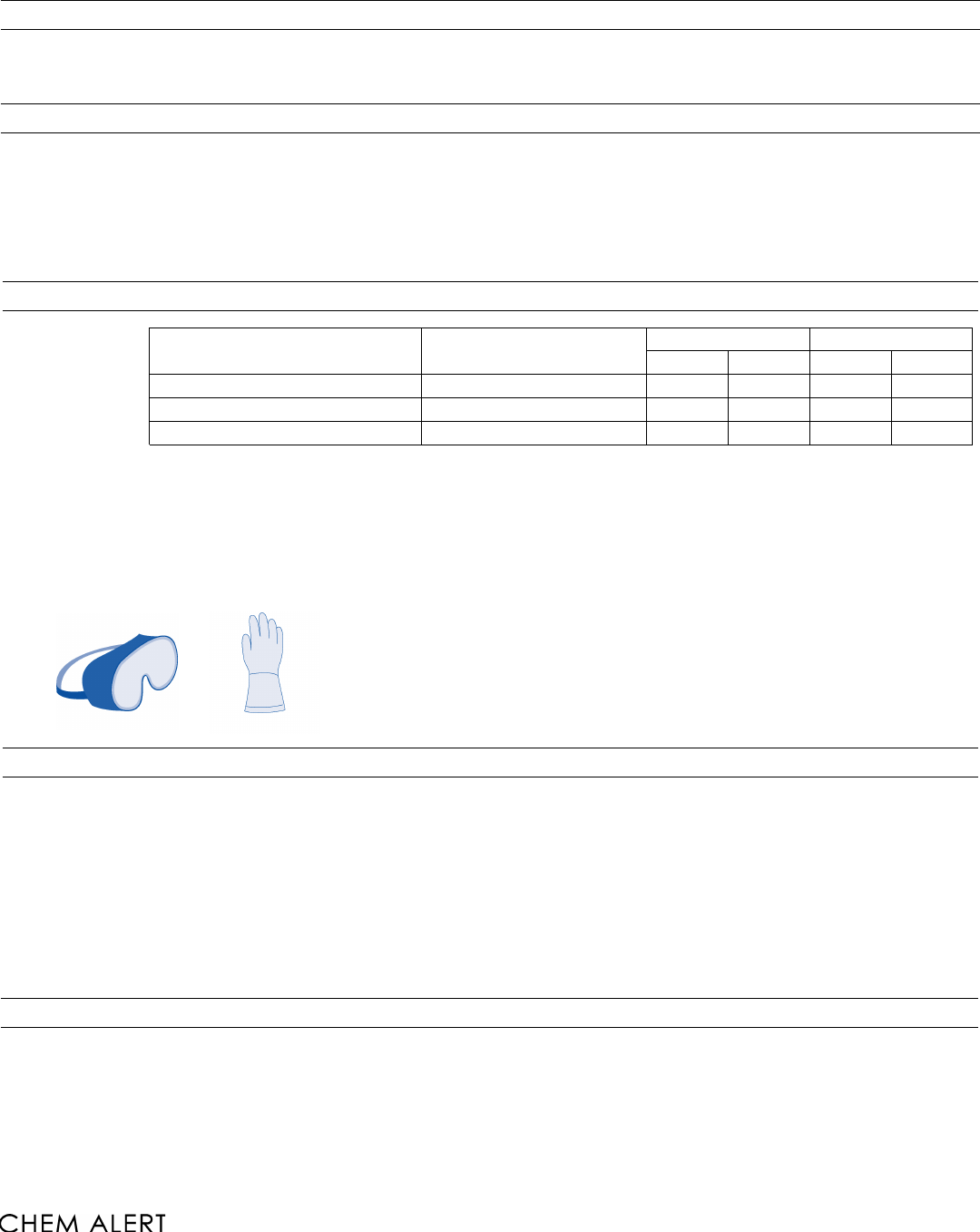 ear splash-proof goggles and neoprene or nitrile gloves. When using large quantities or where heav