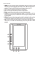 ViSUALIZATION 1. POWER: press for 2 seconds to power on/off the eBook. The power on lasts for a few moments, in that period will display the welcome screen. Wait until the process is complete. To Power on the Off/On switch must be always in the position ON. 2. Vo l-: to reduce the volume during the music or video playback. 3. Vol +: to increase the volume during the music or video playback. 4. Return: to cancel the current process or to return to the previous menu. 5.