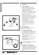 • • • • • Pour le montage de l’unité d’entraînement, assurez-vous que la tige de piston est insérée via le côté partie saillante du vérin. Pour le montage de l’unité d’entraînement, assurez-vous que le piston est inséré via le côté bague. Tapotez doucement le piston pour le positionner contre sa tige. 5.2.2 La tête de fixation • Démontez et nettoyez tous les composants exposés avec un solvant doux. • Desserrez la vis sans tête de la goupille de fixation du vérin, et retirez-la.