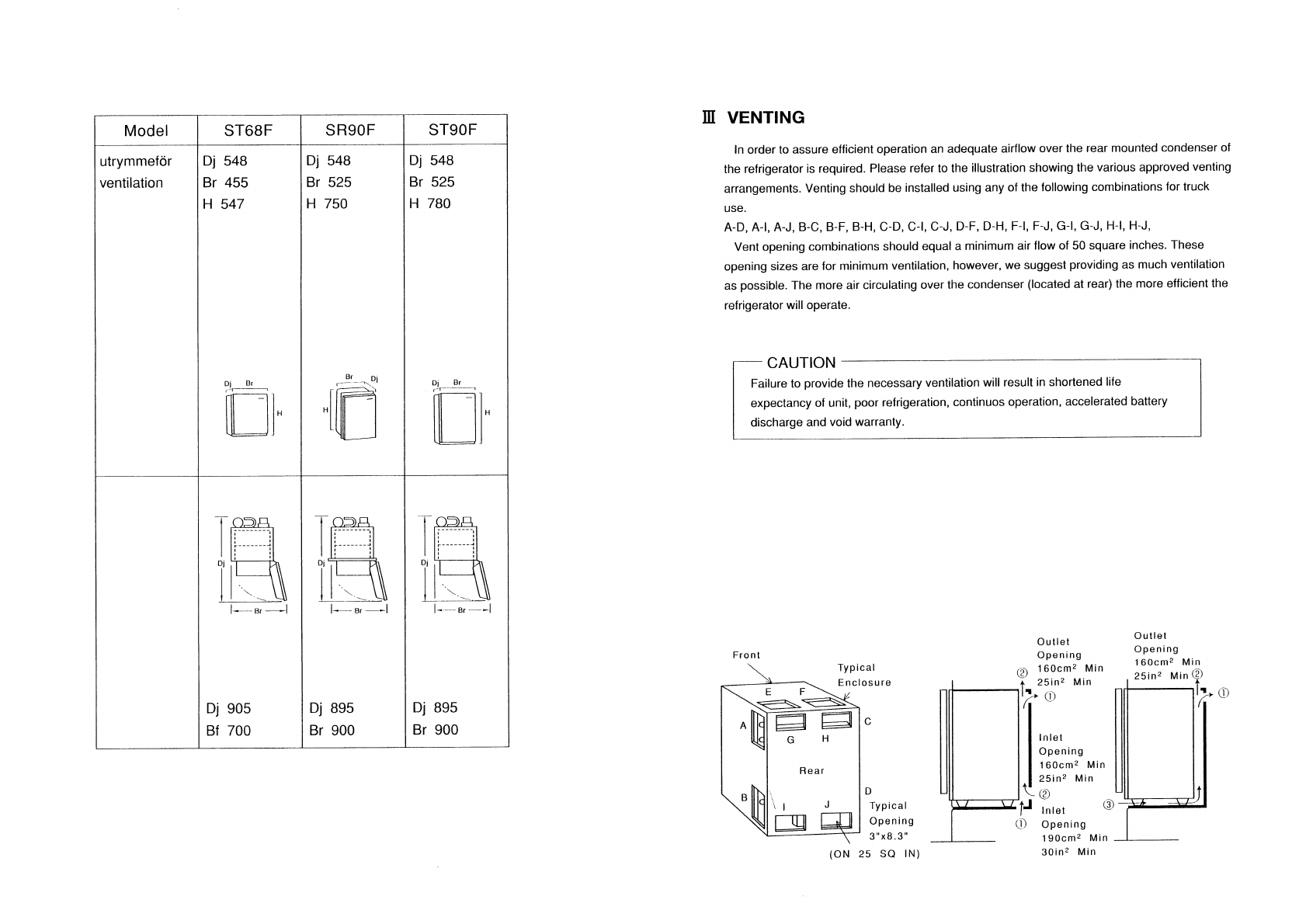 the refrigerator is required. Please refer to the illustration showing the various approved venting