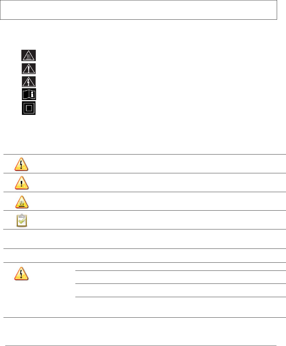 following safety symbols appear throughout this document to indicate dangerous conditions and important safety