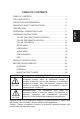TABLE OF CONTENTS TABLE OF CONTENTS ……………………………………………….. 1 FOR YOUR SAFETY …………………………………………………... 2 PRCAUTIONS AND REMINDERS ……………………………………. 3 IMPORTANT SAFETY INSTRUCTIONS …………………………….. 5 OPERATING INSTRUCTIONS ………………………………………. 10 TO USE THE FRONT PANEL CONTROL …………………….. 10 TO USE THE REMOTE CONTROL ……………………………. 11 TO USE THE MENUS ……………………………………………. 12 SETUP MENU …………………………………………………….. 12 VIDEO MENU ……………………………………………………... 13 AUDIO MENU ……………………………………………………... 14 FEATURE MENU ………………………………………………….