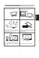 PRECAUTIONS AND REMINDERS Don't place the TV in confined spaces or in a box when using it. Unplug immediately if is malfunction like no picture, no video/audio,smoke and bad odor from TV. Unplug immediately if other foreign materials are put inside TV box or if the TV fell down. Don't throw any object inside the TV box like metals or other flammable materials. Prohibit/Avoid opening TV cabinet English Place unit on even surfaces.