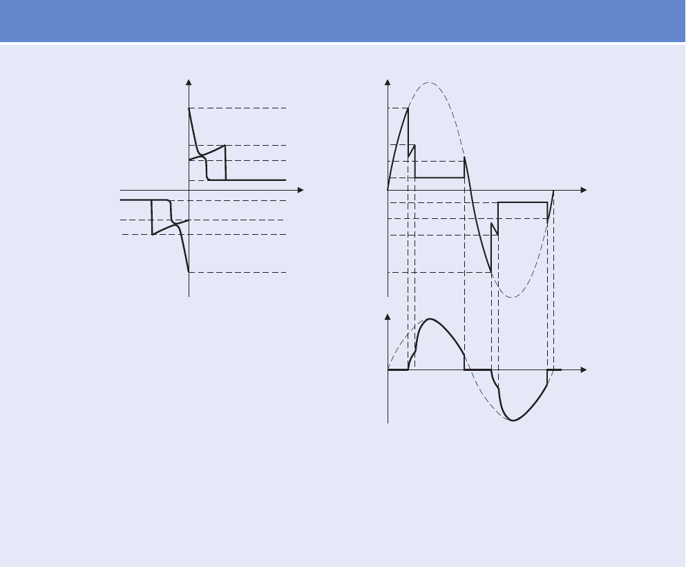 Strom jeweils als Funktion der Zeit beim Begrenzen einer sinusförmigen