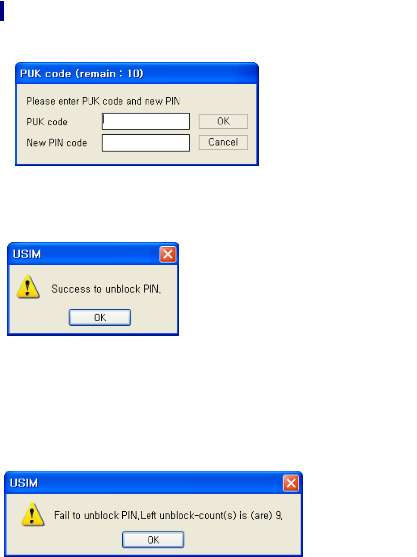 Note: PUK Code may be identified in USIM Pack when purchasing USIM and consists of 8