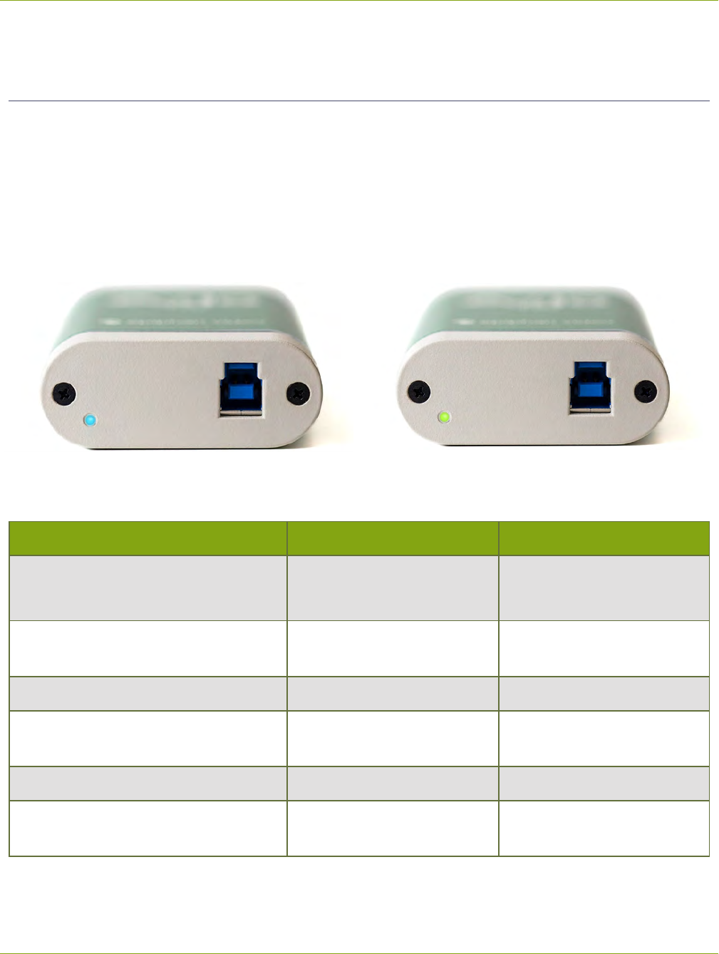 The color and action of the indicator LED depends on whether you are connected by USB 3.0 or USB 2.0. For