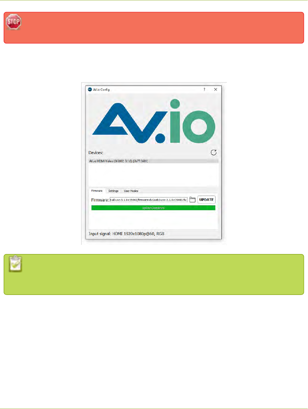 Do not disconnect your AV.io HD at any point during the update process! Doing so may cause