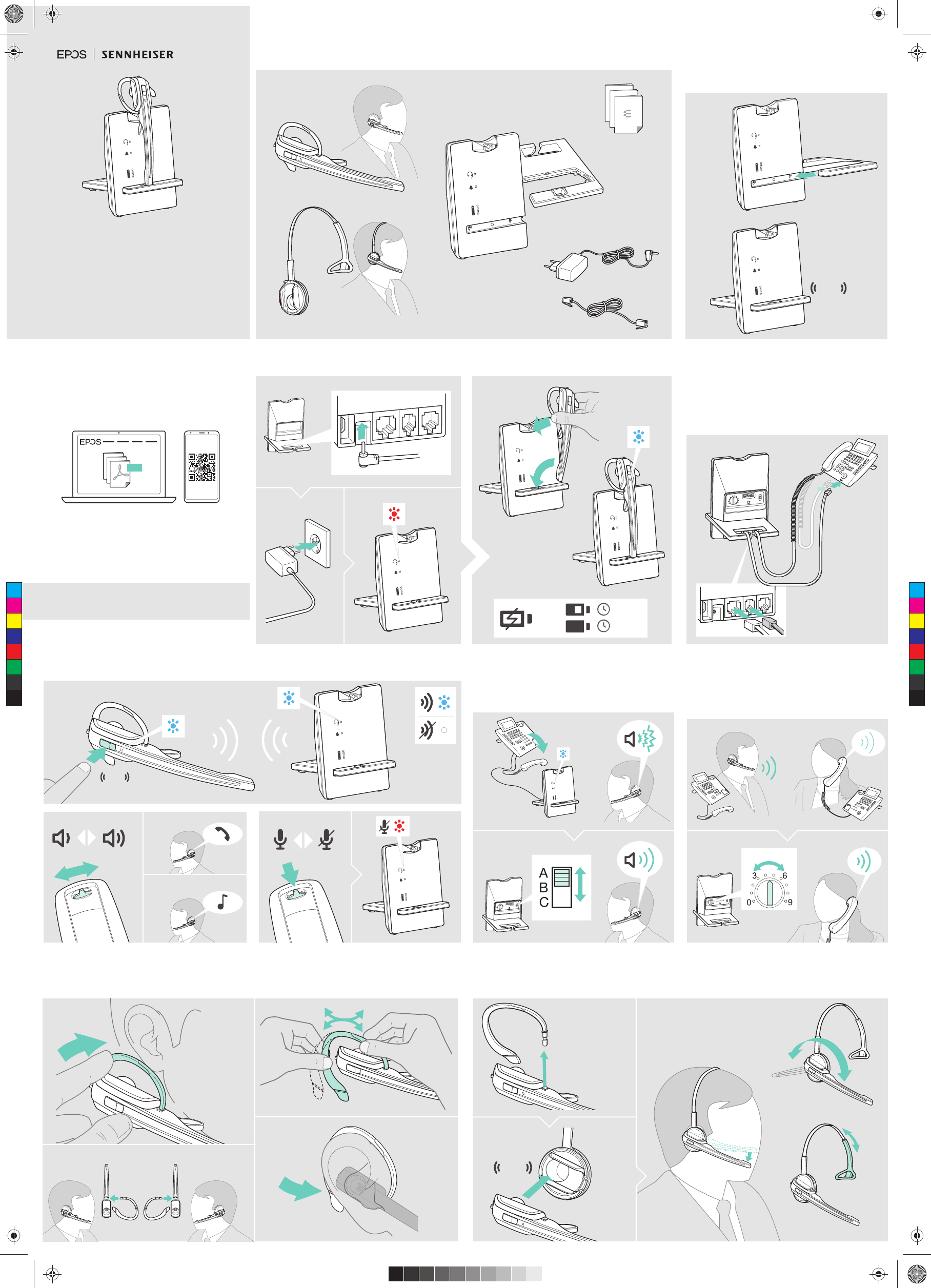 Charging the headset | Headset laden | Charger le micro-casque | Ricarica delle cue | Carga del auricular | Carregar o headset |