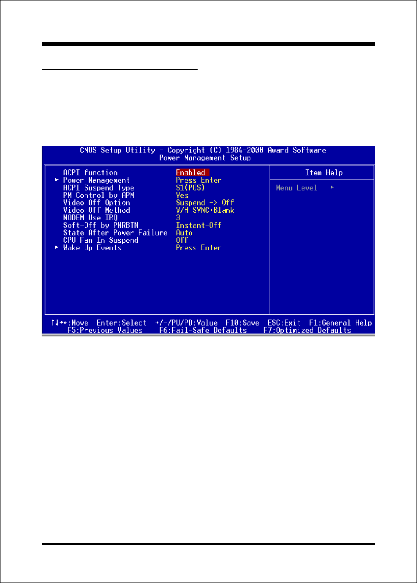 Choose the POWER MANAGEMENT SETUP in the CMOS SETUP UTILITY to