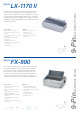 St an da rd an do pt ion al Op tio na lc ut sh ee t fe ed ers C11C640051 USB, Parallel, Serial optional Network, 802.11b/g ESC/P IBM 2380+ ● ● ● ❍ 50 sheet 1 year replacement or repair optional extension to 3 years FX-890 C11C524021DA USB, Parallel optional Network, 802.11b/g, Serial ESC/P IBM PPDS OKI ML ● ● ● ❍ 50 + 150 sheet *1 1 year replacement or repair optional extension to 3 years LX-1170II C11C641002 USB, Parallel, Serial optional Network, 802.