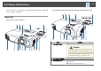 Part Names and Functions Name 12 Function D USB-B port • Connects the projector to a computer using a USB cable, and projects the images on the computer. s "Projecting with USB Display" p.32 • Connects the projector to a computer using a USB cable to use the Wireless Mouse function. s "Using the Remote Control to Operate the Mouse Pointer (Wireless Mouse)" p.57 E Audio port Inputs audio from equipment connected to the Computer port, the S-Video port, or the Video port.