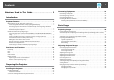 Contents 3 Notations Used in This Guide . . . . . . . . . . . . . . . . . . . . . . . . 2 Introduction Projector Features . . . . . . . . . . . . . . . . . . . . . . . . . . . . . . . . . . . . . . . . . . 7 Quick and Easy Set up, Projection, and Storage . . . . . . . . . . . . . . . . . . . . . . . . . Connecting with a USB cable and projecting (USB Display) . . . . . . . . . . . . . . . Detecting projector movements and automatically correcting image distortion ..........................................