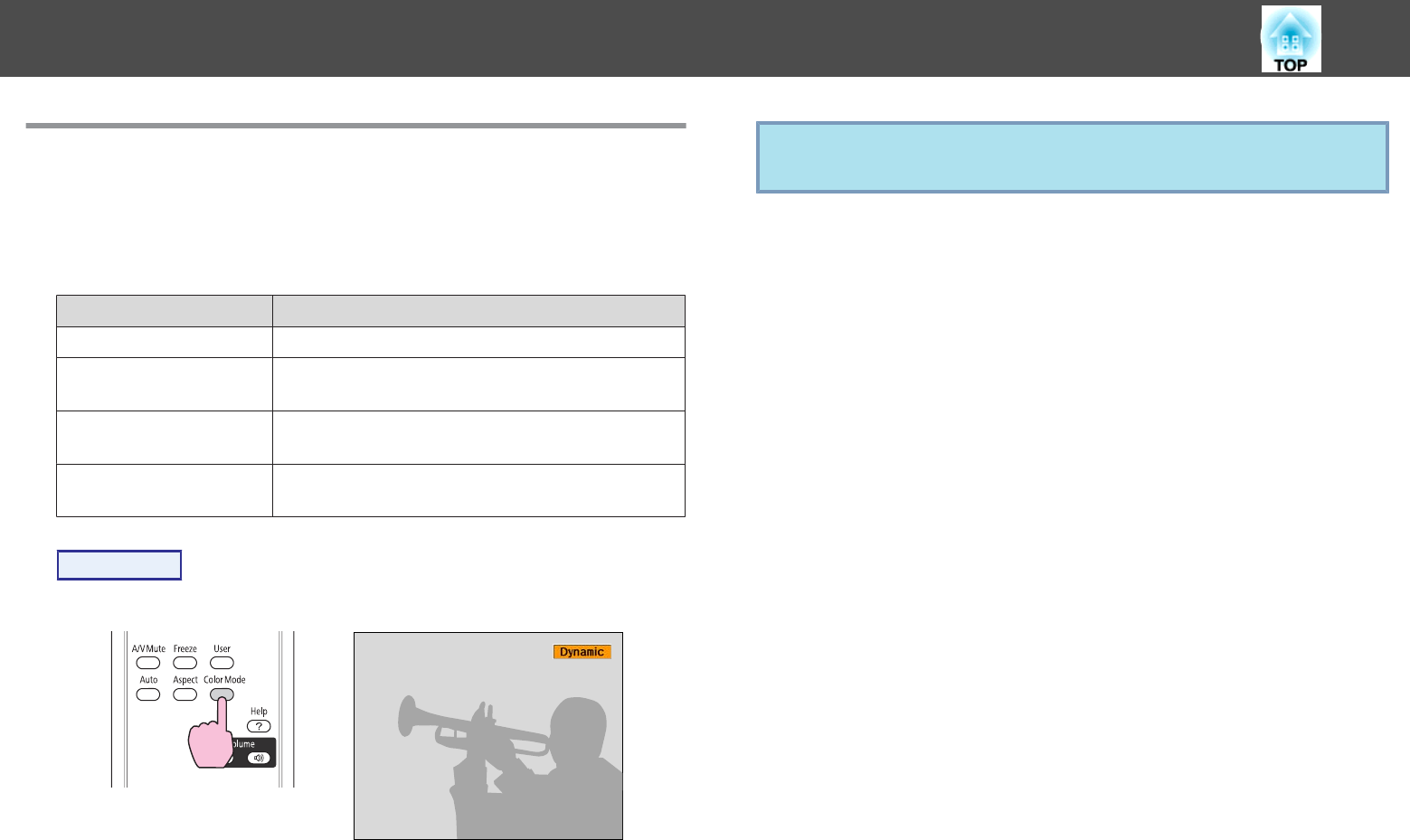 Each time you press the button, the Color Mode name is displayed on