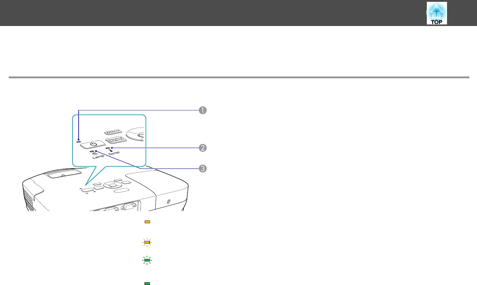 The projector is provided with the following three indicators that indicate the operating status of the projector.