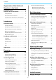 Contents Setting 3D Images . . . . . . . . . . . . . . . . . . . . . . 35 Check the problem . . . . . . . . . . . . . . . . . . . . 58 When the projector detects a 3D format . . . . 35 Problems relating to images . . . . . . . . . . . . . 59 When the projector cannot detect a 3D format . . . . . . . . . . . . . . . . . . . . . . . . . . . . . 35 Problems when projection starts . . . . . . . . . . 63 Problems with the remote control . . . . . . . . . 64 If the 3D image cannot be viewed . . . . . . . .