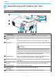 Einleitung Bezeichnung Funktion j Luftfilterabdeckung Öffnen Sie zum Ersetzen des Luftfilters diese Abdeckung und nehmen Sie den Luftfilter heraus. s S.76 k Hinterer Fuß Wenn Sie den Projektor auf einer Fläche, wie z. B. einen Schreibtisch, aufstellen, stellen Sie die horizontale Neigung durch Herausziehen des Fußes ein. s S.27 l Fokusring m Zoomring Stellt den Bildfokus ein. s S.26 n Horizontaler Key‐ stone-Einsteller Führen die horizontale Keystone-Korrektur aus. s S.