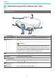Nützliche Funktionen Bezeichnung l WiHD-Anzeige (blau) Funktion Gibt den Kommunikationsstatus des WirelessHD an. • Leuchtet, wenn Bilder drahtlos an den Projektor übertragen werden. • Leuchtet nicht, wenn die Ausgabe an den Anschluss HDMI Out erfolgt. m Link-Anzeige (blau) Gibt den Verbindungsstatus mit dem Projektor an. • Leuchtet bei Verbindung mit dem Projektor. • Blinkt, wenn ein Projektor gesucht wird. • Blinkt im Standby des Energiesparmodus langsam.