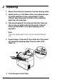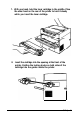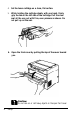 14. Slide the cartridge into the printer until it stops. Then push the cartridge firmly until it locks in place. 15. Close the front cover and press the top comers to lock it into position. Clearing Feed Jams If the printer stops printing and the Error light is on while the Ready light is off, follow these steps. 1. Unlock the paper release lever by pulling it toward the front of the printer. 2. Remove paper from the paper tray. 3.
