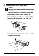 1 2 With one hand, hold the toner cartridge in the middle. Place the other hand on the rear of the printer to hold it steady while you insert the cartridge. 13. Insert the cartridge into the opening at the front of the printer. Position the locking knobs on both sides of the cartridge into the guides inside the printer.
