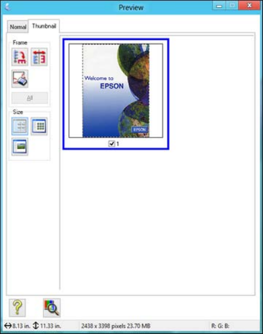 • Thumbnail preview: Your scan area is selected automatically, but you can change it. Place your