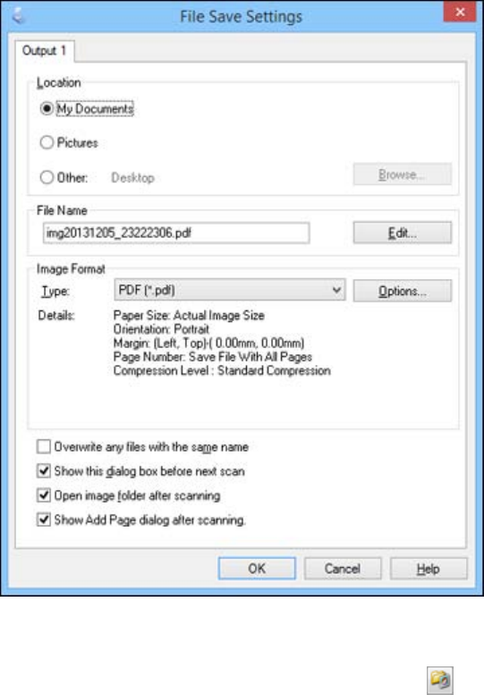 The File Save Settings window may appear after you click Scan on the Epson Scan window. You may