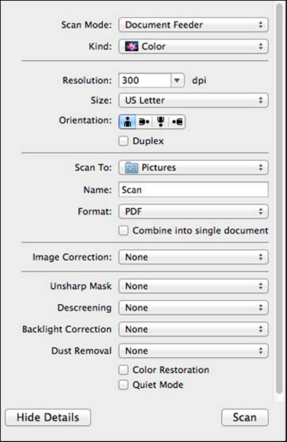 4. Select the Scan Mode setting indicating where you placed your original (if available). Select any