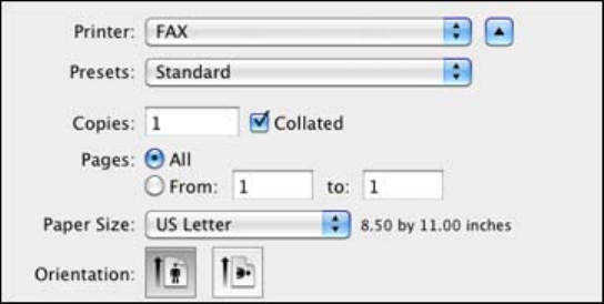 3. Select your product FAX option as the Printer setting.