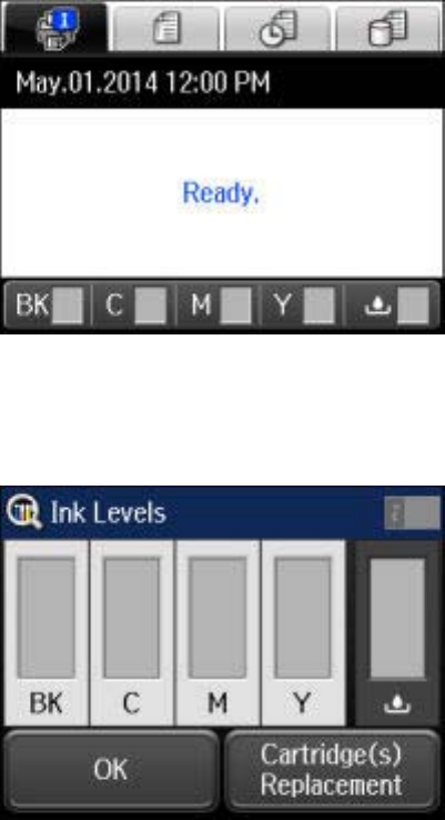Note: The displayed ink levels are approximate. The icon on the right side of the screen represents