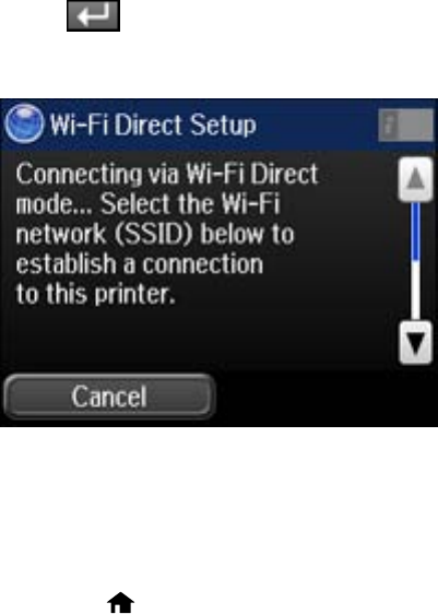 Note: If the AP, D, or Direct connection symbol is not displayed on the LCD screen, Wi-Fi Direct