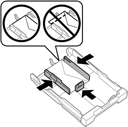 Note: Make sure the envelopes are loaded against the edge guide and not sticking out from the end