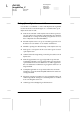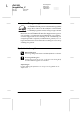 L R4C428 long.bkRev_C A5 size 9/15/99 Setup.fm Pass 2 Proof Sign-off: tantoname leadername editorname _______ _______ _______ Enkele voorzorgsmaatregelen Bij het gebruik van de Stylus Scan ❏ Steek uw hand niet in de Stylus Scan en raak de cartridges tijdens het afdrukken niet aan. ❏ Verplaats de printkop niet met de hand. Anders kan de Stylus Scan beschadigd raken. ❏ Gebruik altijd de Aan/uit-knop P om de Stylus Scan uit te zetten.