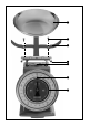Bedieningselementen 1 Schaal 2 Schroef 3 Schaaldrager 4 Moer 5 Nulstelling 6 Wijzer 7 Schaalverdeling Technische gegevens Maximale draagkracht 5 kg (11 lbs) Maatverdeling 20 g (1 oz) Volume schaal 1 NL BE 800 ml Veiligheidsvoorschriften Neem de volgende veiligheidsvoorschriften in acht voor een veilige omgang met het apparaat: WAARSCHUWING - LETSELGEVAAR ■ Controleer het apparaat vóór gebruik op zichtbare schade aan de buitenzijde. Gebruik geen apparaat dat beschadigd of gevallen is.