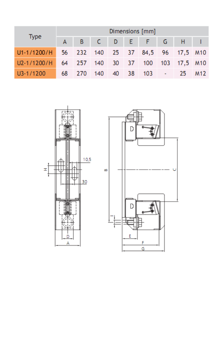 NH fuse holder with blown fuse indicator 1-pin 400 A